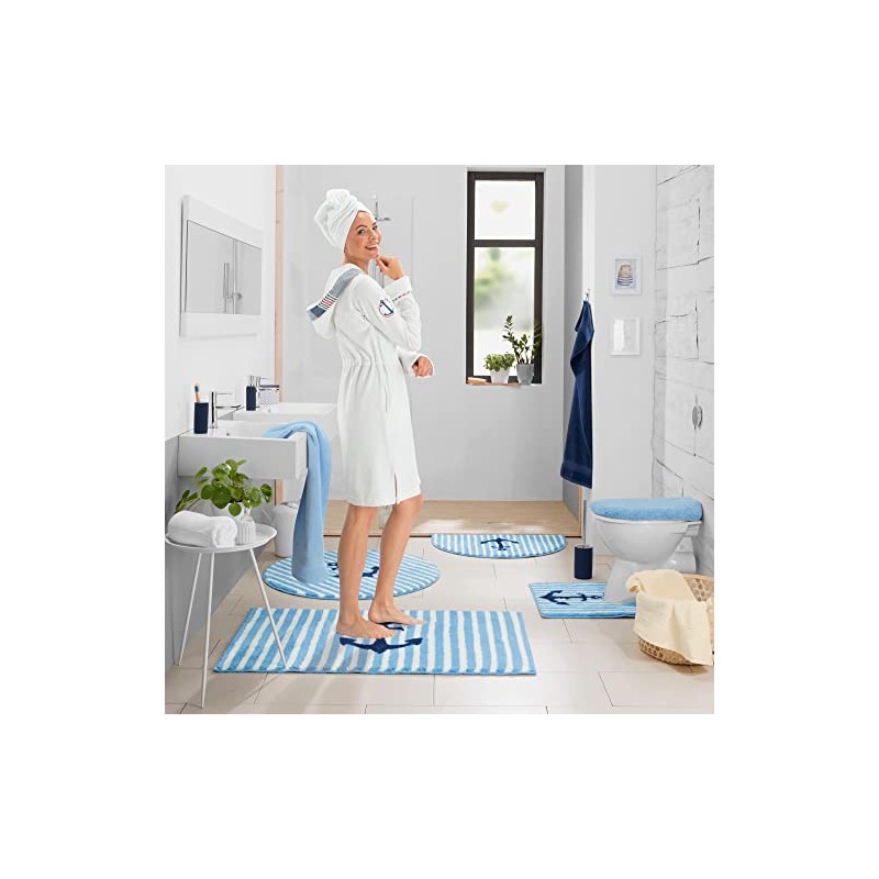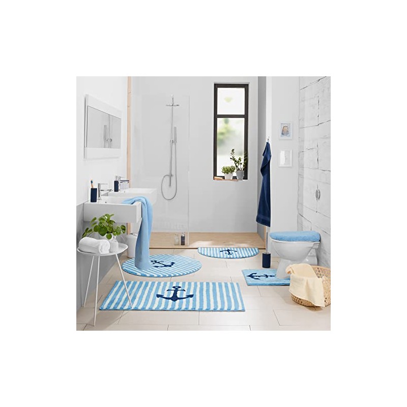 Erwin Müller Bath Mat Do you love the sea? Stripes and the anchor spread maritime flair and turn your bathroom into an oasis of well-being. You are happy to be pampered by the fluffy soft pile, it is a treat for your feet. With non-slip coating on the back. Also suitable for underfloor heating.