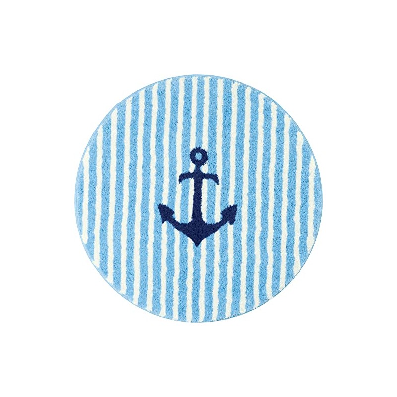 Erwin Müller Lefkada Maritime Bath Mat, Light Blue, Round 80 cm Diameter, Flu...