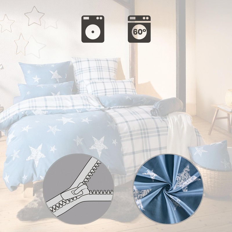 - Dreamy stars on the one hand, classic checks on the other hand and the harmoniously coordinated colour concept radiate pure cosiness.