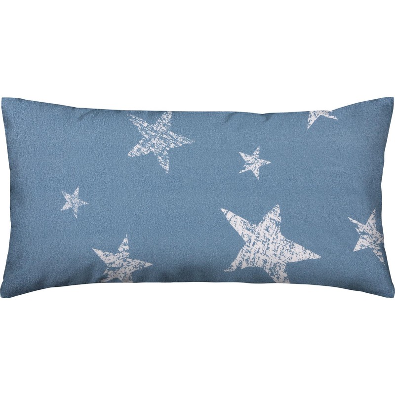 Erwin Müller Reversible Cushion Cover Flannelette Stars and Checks Blue Size 40 x 80 cm for Cold Nights, Velvety Soft, Comfortably Warm, Temperature-Regulating, Easy Care, with Zip