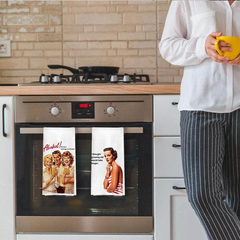 Humor adds the perfect touch to everyday life. This 16×24 inch microfiber waffle weave towel features playful phrases and fun graphics that bring a cheerful vibe to any kitchen or bathroom. Whether it’s a witty quote or a charming illustration, it turns ordinary spaces into something a little more fun.Lightweight and soft in texture, the towel hangs beautifully and makes a visual impact wherever it's displayed. Great for brightening your home or as a small gift that brings a smile—because a little laughter goes a long way.