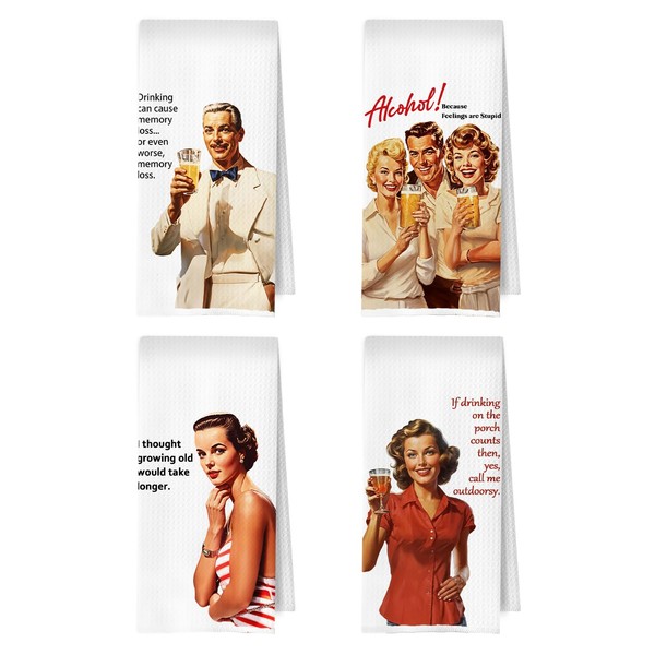 ERYBHKRTYH Funny Alcohol Kitchen Towels Set - Beer Cocktail Waffle Decorative Dish Towels, Alcohol Gifts for Women Hand Towel Tea Towel for Bar Cart Decor, 16x24 Inches