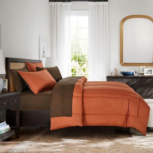 ESCA Queen Comforter with Sheets Set - 7 Pieces Brunt Orange Bed in a Bag Set