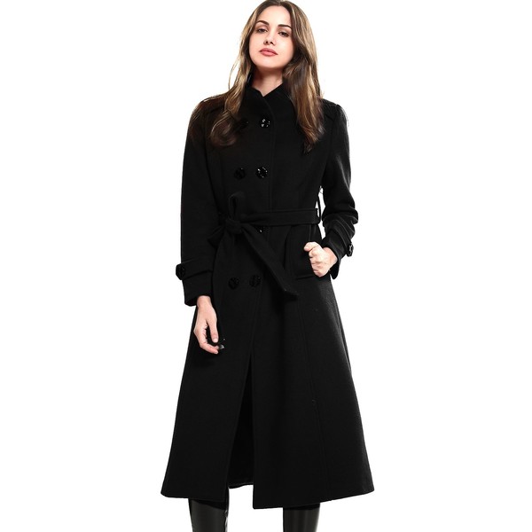- Classical Double-Breasted coat with Belted waist, Buttoned cuffs,Unique collar design,side-entry front pockets