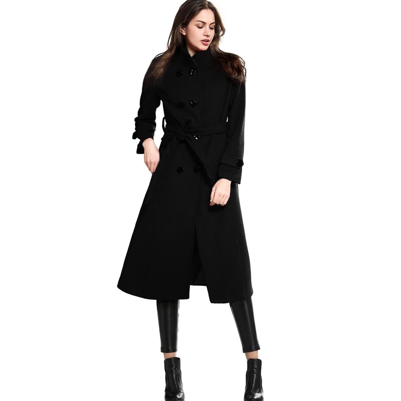 Escalier Women's Wool Trench Coat Winter Long Double-Breasted Jacket With Belts