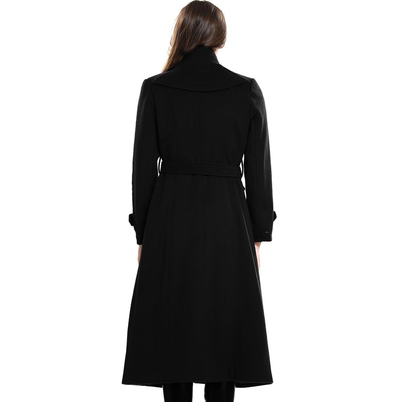 Escalier Women's Wool Trench Coat Double-Breasted Jacket with Belts Black L