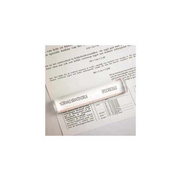 The Eschenbach Bar magnifier magnifies letters to appear taller while the breadth remains the same. This enables strain-free reading over long periods. It comes with a handle end for ease of use. A red orientation line helps keep your place as you read.