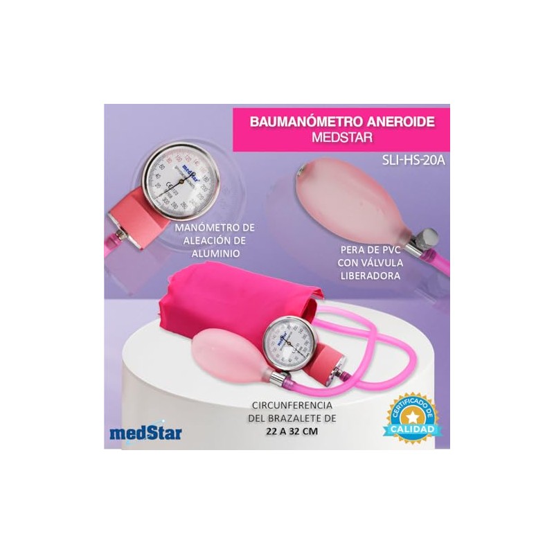 Esfigmomanómetro Adulto Aneroide Aluminio Medstar (Rosa)