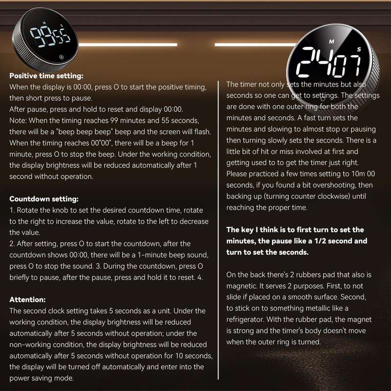 - Audible Alerts and Visual Indicators: The unmistakable, adjustable beep alerts you when your countdown clock reaches zero, so you'll never miss the perfect cooking window. The LED indicator light adds an extra layer of assurance, especially when you're multitasking or have background noise in the kitchen.
