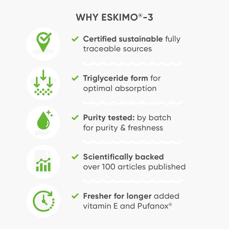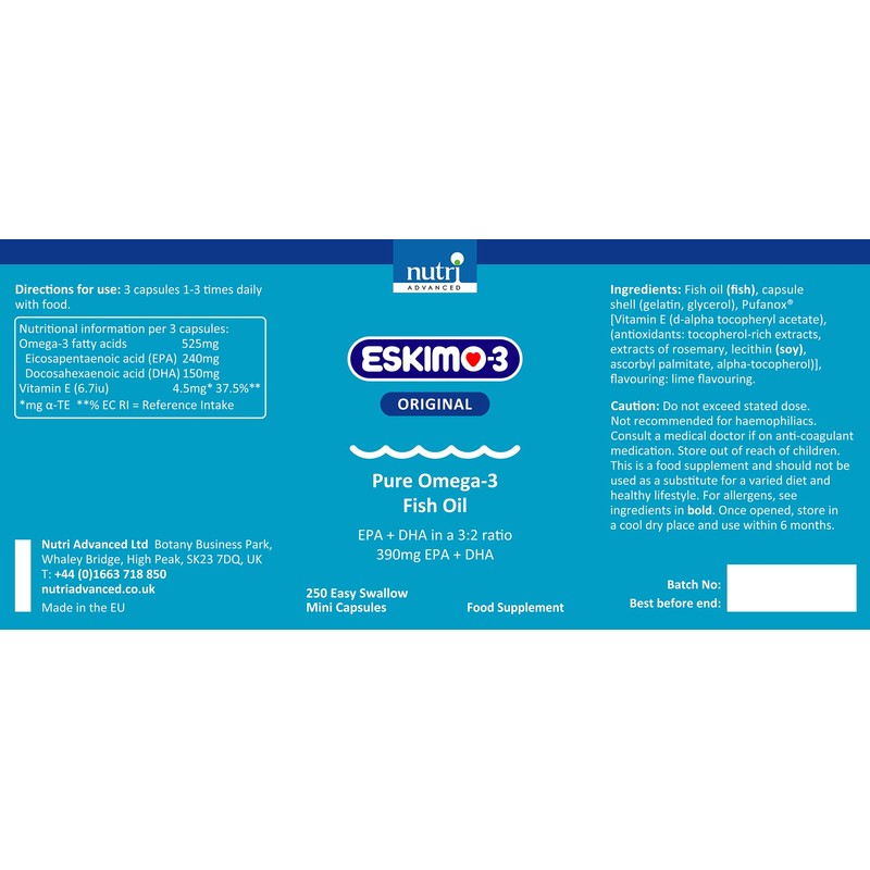 • Eskimo-3 fish oil is of the highest quality from fully traceable and sustainable sources. The Eskimo-3 range has been awarded "Friend of the Sea" certification.