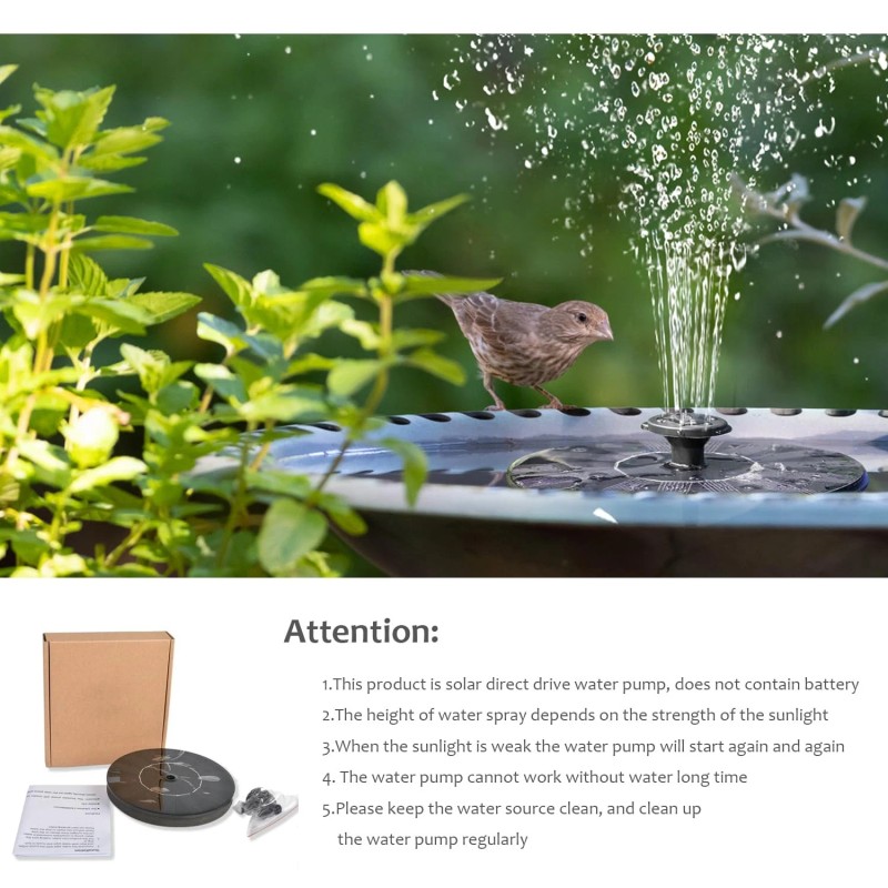 Fountain Usage: Solar fountains can be placed in the garden to attract hummingbirds to take a bath, can also be placed in the pond to give the fish for water circulation and oxygenation, so that your garden looks lively!