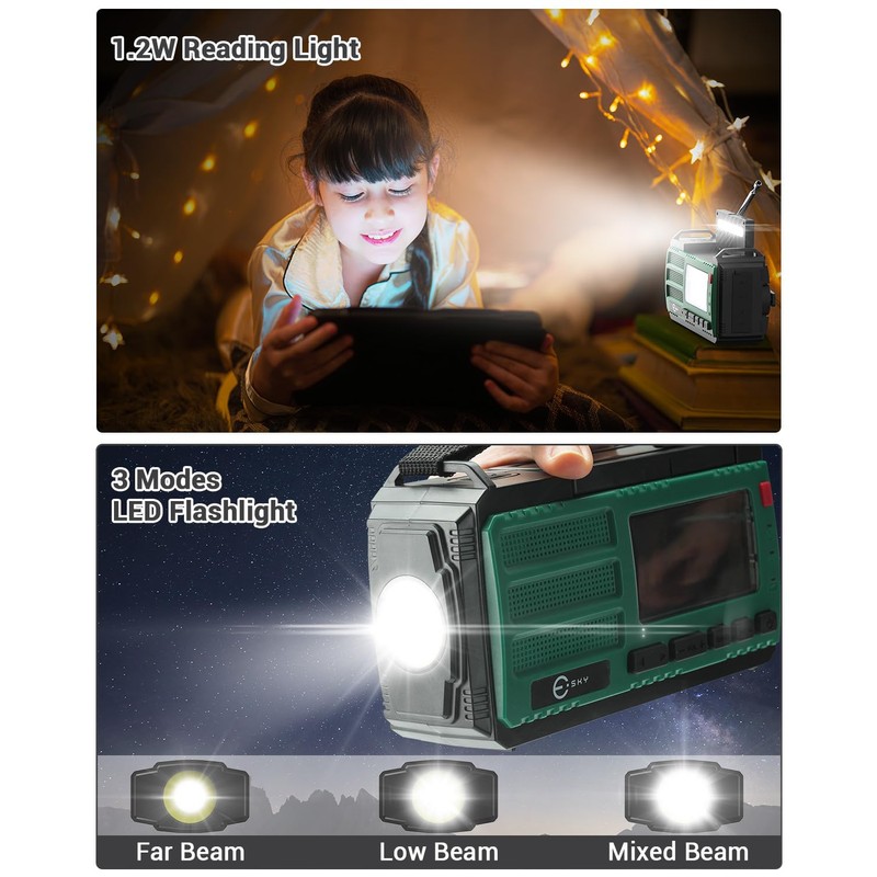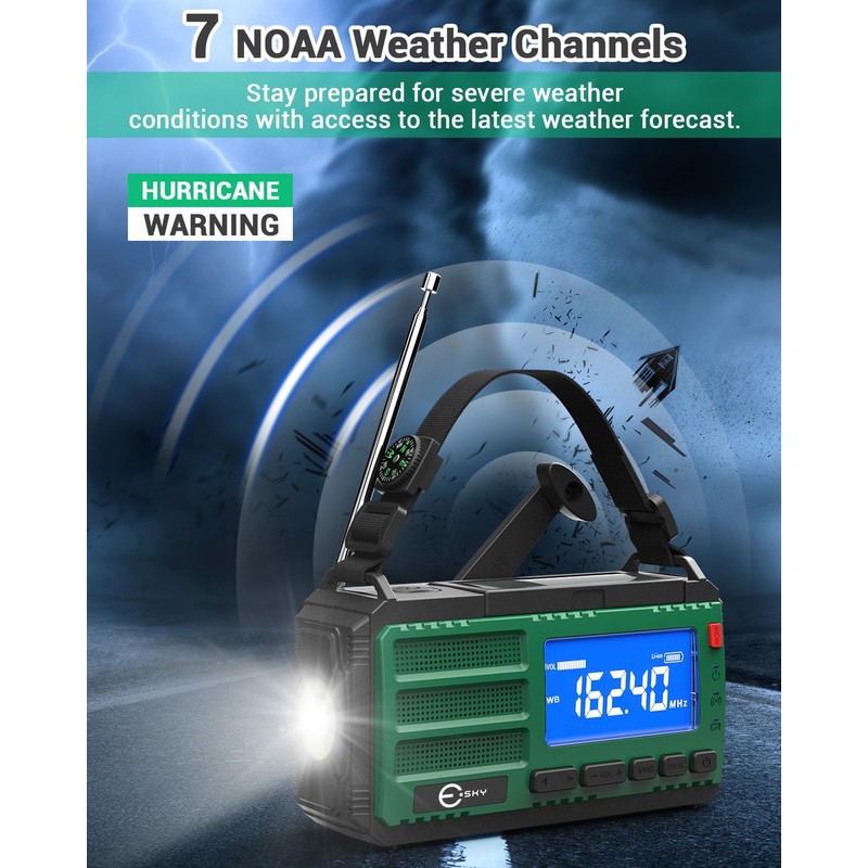 Esky 10000mAh/37000mWh Emergency Hand Crank Radio, AM/FM/NOAA Portable Rechargeable Weather Alert Radio with Flashlight, Compass Reading Lamp, Solar Powered for Outdoor Camping Survival Gear