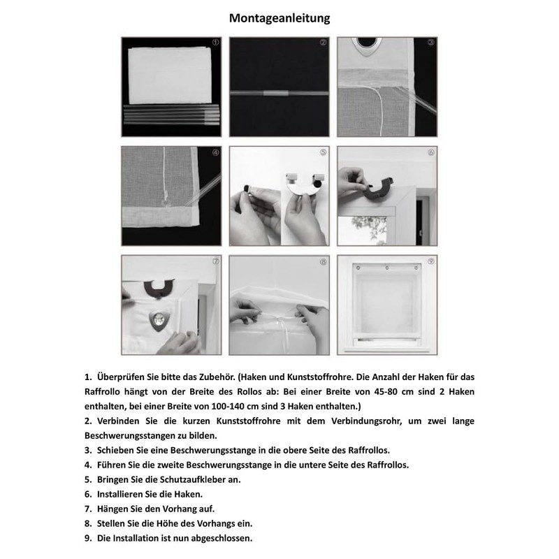 Eslir Roman Blind, no Drilling required, Roman Curtains with U-hooks, Eyelet Roller Blind, Voile Curtains, Transparent Curtains, Modern, Pack of 1