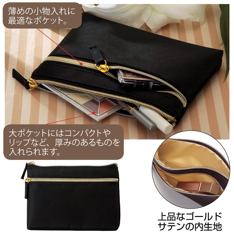 Esolle 145031 Makeup Pouch, Slim, Approx. 4.7 x 7.1 x 0.8 inches (12 x 18 x 2 cm), Stylish, Gorgeous, Eltrad Gold Series