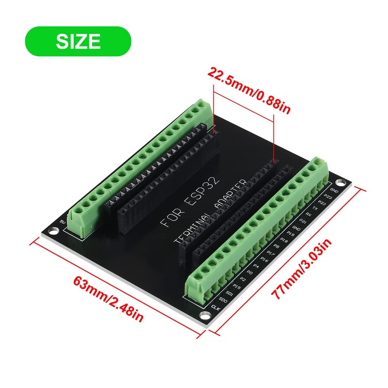 • The breakout board is only suitable for 38 pin narrow version ESP32 without mounting holes. Note: Does not fit ESP-WROOM-32 DevKit V1 version. Please confirm that the pin width of your esp32 board matches the pin width of the breakout board