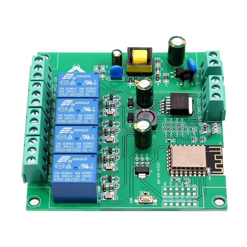 - Flexible power supply: control lamps, motors and other external devices via the integrated ESP32 four-channel relay, compatible with AC250V/DC30V loads.