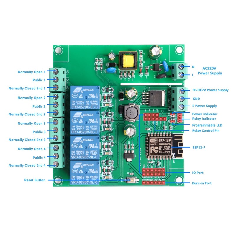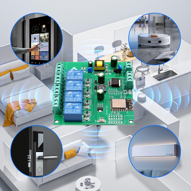 - Multi-purpose: ESP8266 4-channel relay development board supports secondary development and learning, wireless smart home control.