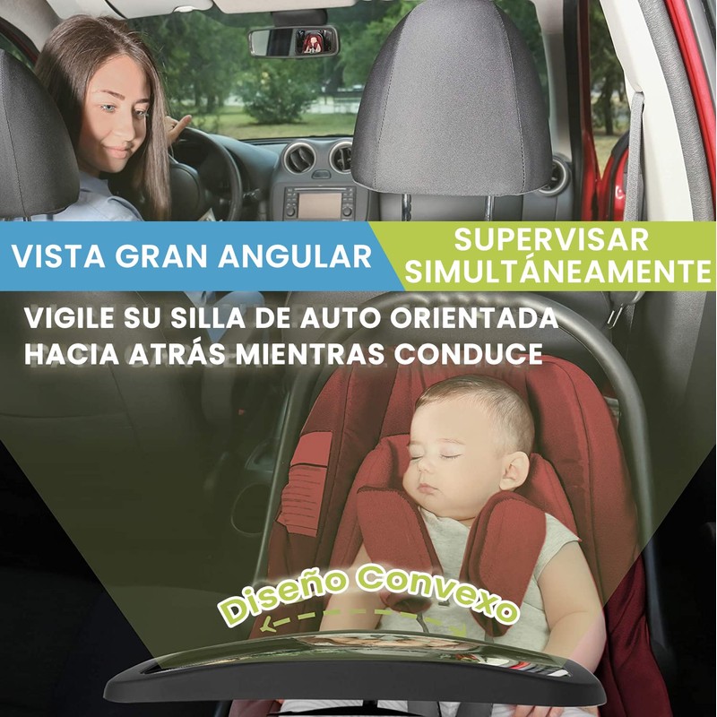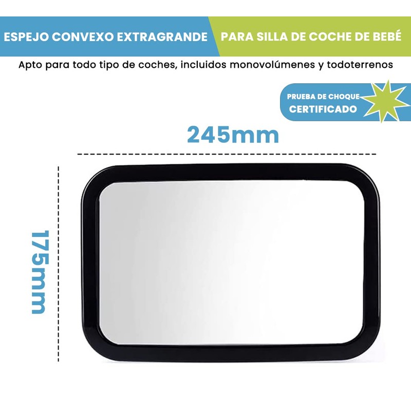 - ❤ESPEJO CONVEXO DE GRAN ANGULO - Nuestro espejo convexo para coche de bebé extra grande de 245 x 175 x 85 mm es totalmente ajustable, lo que le proporciona una visión cristalina de su bebé orientado hacia atrás de la cabeza a los pies. No más adivinanzas, usted VERÁ a su hijo y fácilmente lo mantendrá seguro y cómodo y se concentrará en conducir con seguridad.