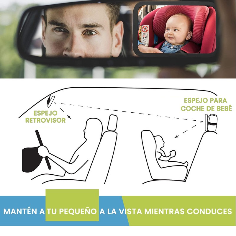 - ❤DISEÑO INASTILLABLE & CONSTRUCCIÓN ESTABLE - Este espejo para coche de bebé cuidadosamente diseñado está hecho de vidrio inastillable y cuenta con un sistema de correas extra duradero para garantizar que el espejo se mantendrá firmemente en su lugar incluso a través de carreteras llenas de baches. ¡La seguridad de su ángel es nuestra prioridad número 1!