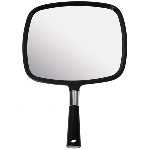 Espejo de Mano con Mango - Espejo Barbero para Cortarse el Cabello Solo - Espejo Grande para Peluquería, Salón de Belleza, Barbería, Clínica Dental, Afeitado y Maquillaje (Negro)