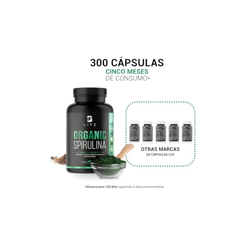 B Life Company - Espirulina Orgánica de 300 Cápsulas 500 mg. Ingredientes naturales: Alga Espirulina. Organic Spirulina B Life.. 🏆 Reconocido por su excelente relación calidad-precio. Construcción robusta y atención al detalle. 🏆 Recomendado por expertos. Ideal para quienes buscan lo mejor en calidad y estilo. Producto auténtico con satisfacción total asegurada. ¡No te quedes sin el tuyo y aprovecha esta oportunidad única!