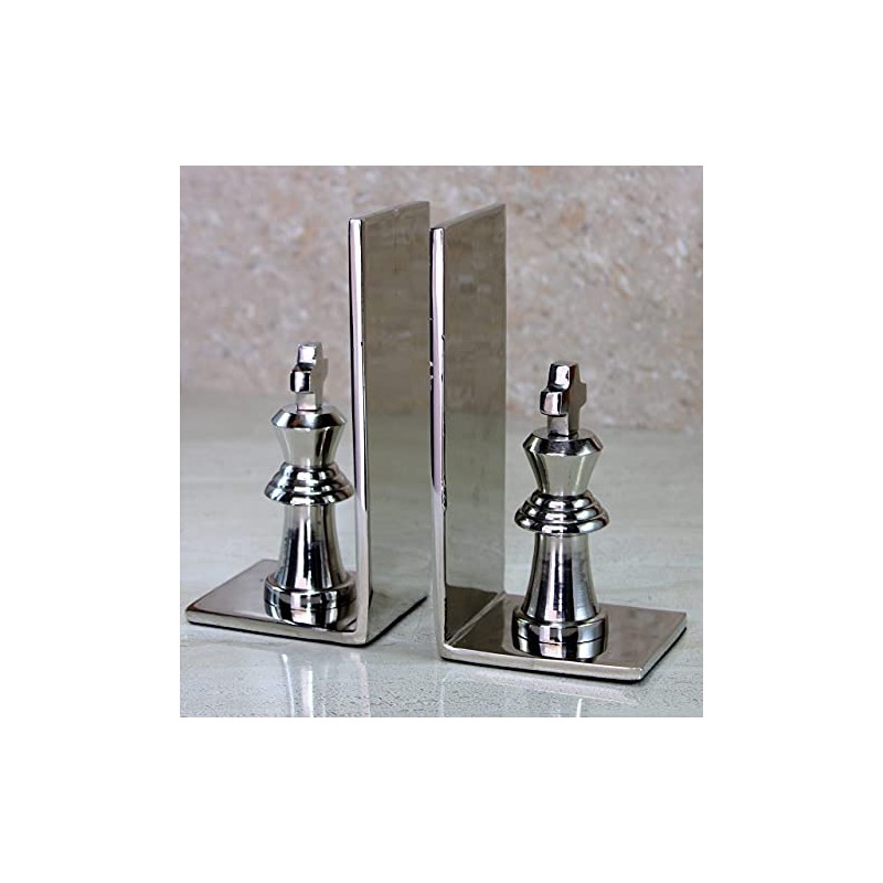 eSplanade Brass Chess King Book Ends or Book Shelf Organizer - Silver Plated - 7" Inches