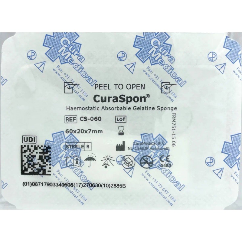 Esponja de gelatina con efecto hemostático Curaspon tamaño 12-7 de 60 X 20 X 7mm