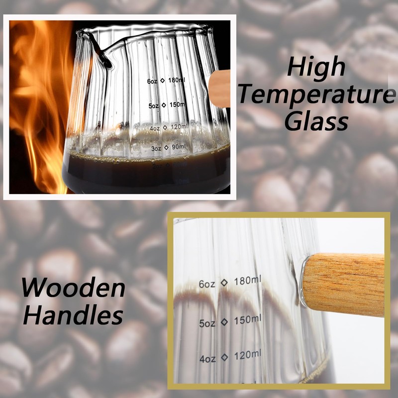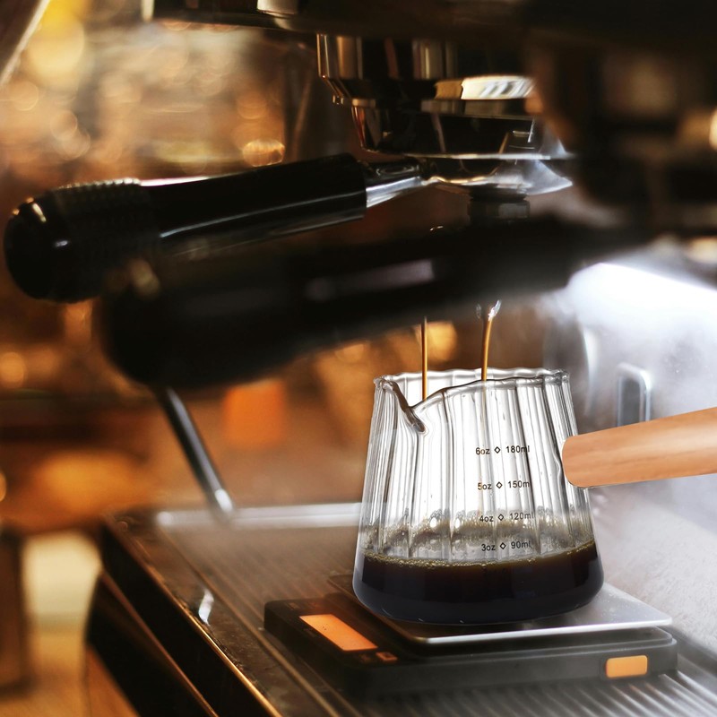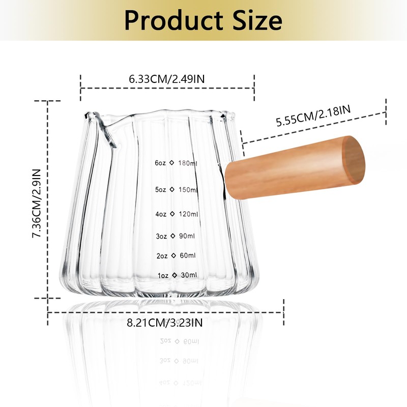 - High Quality Material: Our espresso measuring cups with wood handle are made of high borosilicate glass which is lightweight, corrosion-resistant, heatable and coolable. Safer than any plastic measuring jug