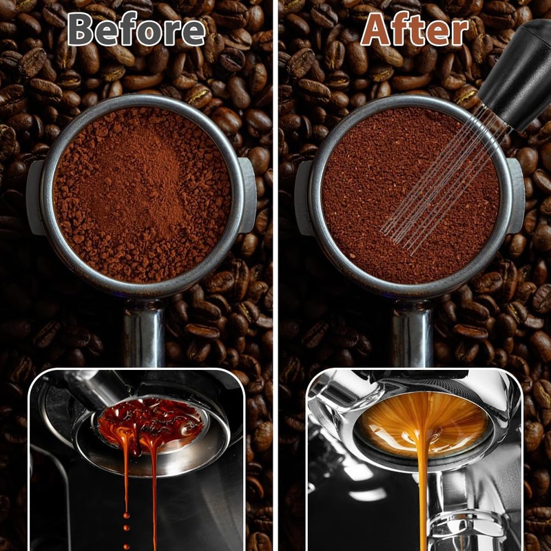 - Precise design, effortless extraction: Our press rods are equipped with an integrated spring and fine scale, so that the pressure is evenly distributed - this ensures constant and complete espresso extraction. The coffee whisk and coffee stirrer are ergonomic shape fits comfortably in the hand and makes every step easier - ideal for anyone who wants perfect espresso quickly and easily.