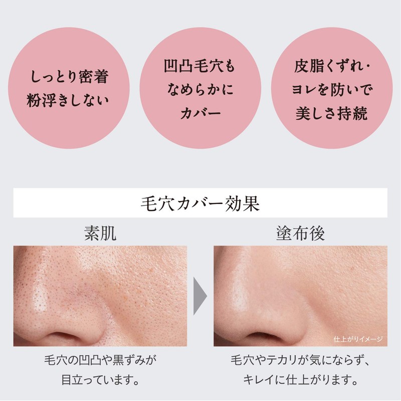 - Moisture-seal pore cover foundation Fits skin with a moisturized, blend in with all conditions One coloring covers pores and color unevenness and lasts as if your skin is beautiful