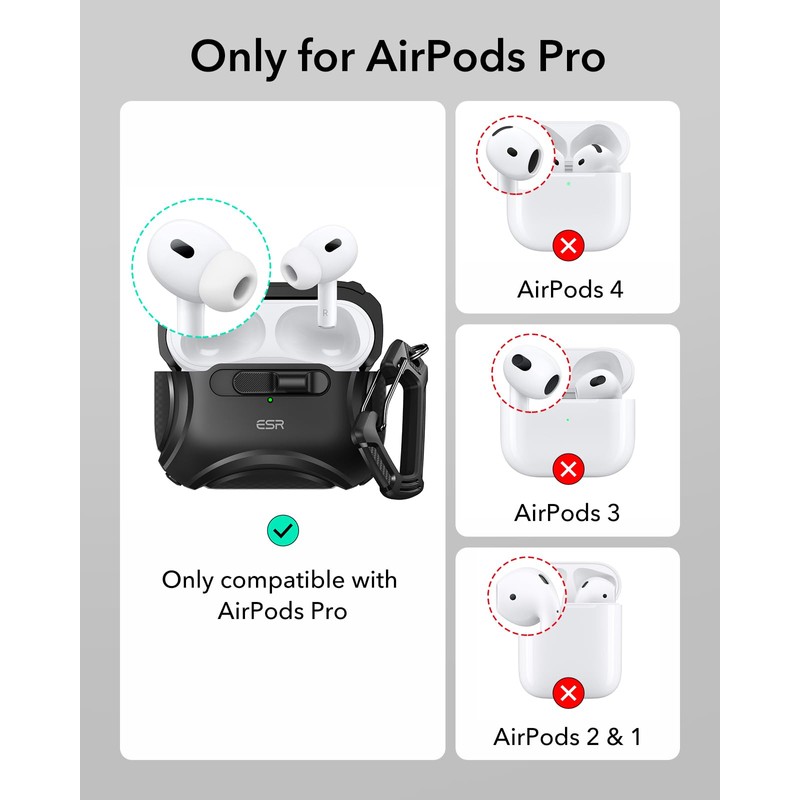 - Compatibility: only compatible with AirPods Pro 2nd Generation (USB-C/Lightning) and AirPods Pro 1st Generation (2019); earbuds and charging case not included