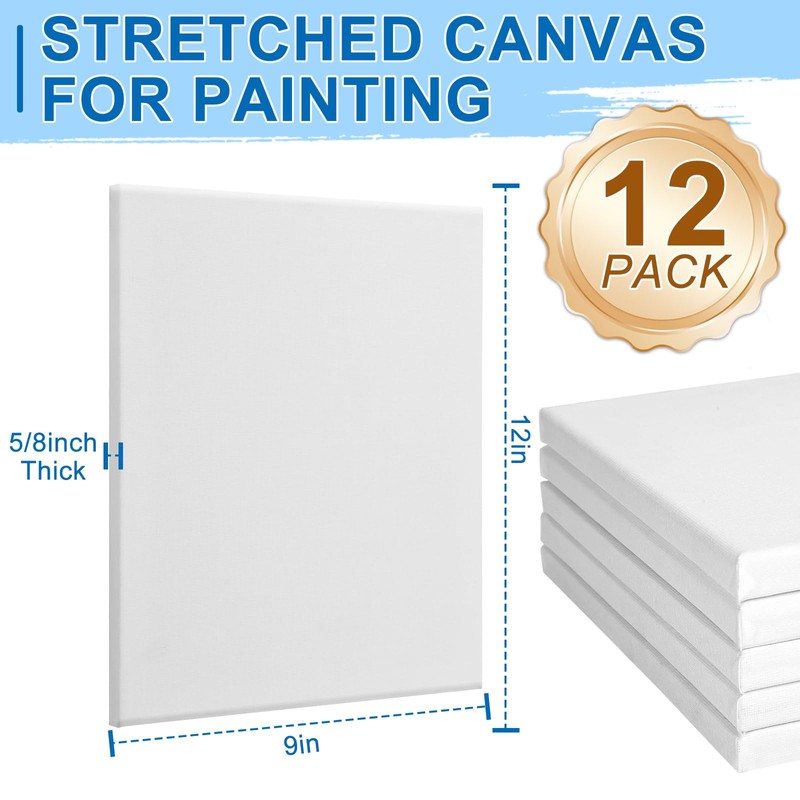 ESRICH Stretched Canvas for Painting, 12 Pack 9x12 Inch Canvas Value Pack,Primed Acid-Free Cotton Blank Canvases, Painting Canvas for Oil & Acrylic Paint.