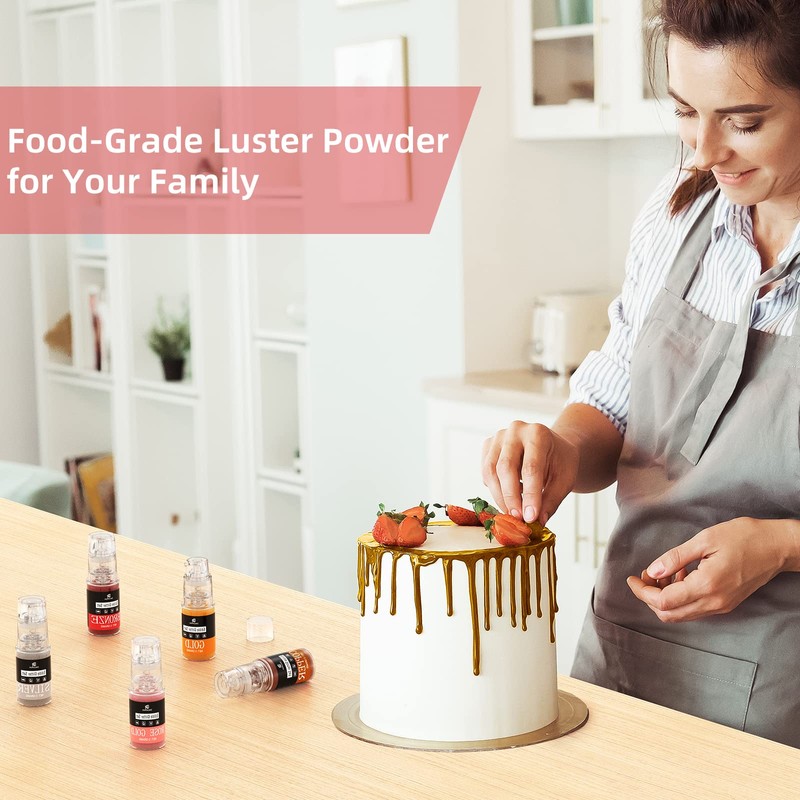 - SICHERE ZUTATEN IN LEBENSMITTELQUALITÄT - Unser Puder zum Dekorieren von Zuckerguss enthält lebensmittelechte Zutaten, keinen Zucker oder Gewürze. Glutenfrei, milchfrei, vegan, allergenfrei. Es bietet lebendige Metallic-Effekte für alle Arten von Anwendungen, ohne den Geschmack oder die Textur zu verändern.