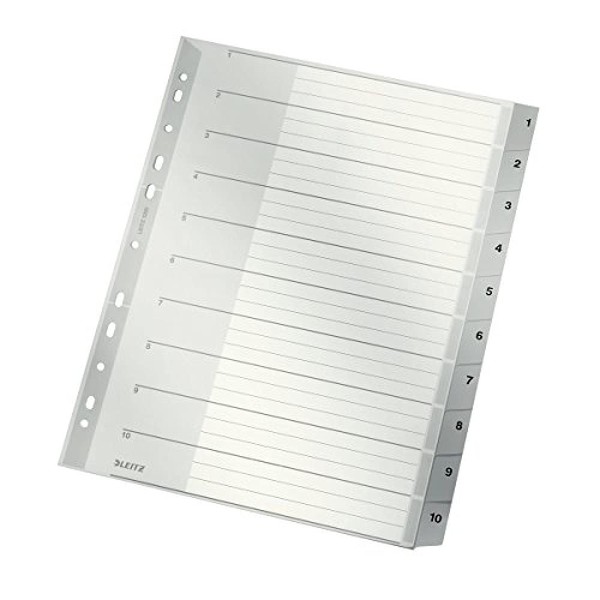 Esselte Leitz 1–10 Plastic dividers, A4, PP, 10 Sheets, Grey