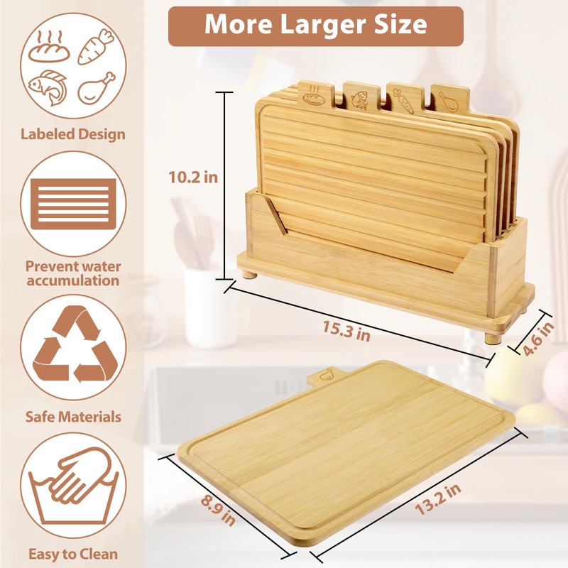 - Organized Cooking with Food Icons: Each cutting board is clearly labeled with food icons for quick identification. Enjoy a well-organized kitchen and effortless cooking