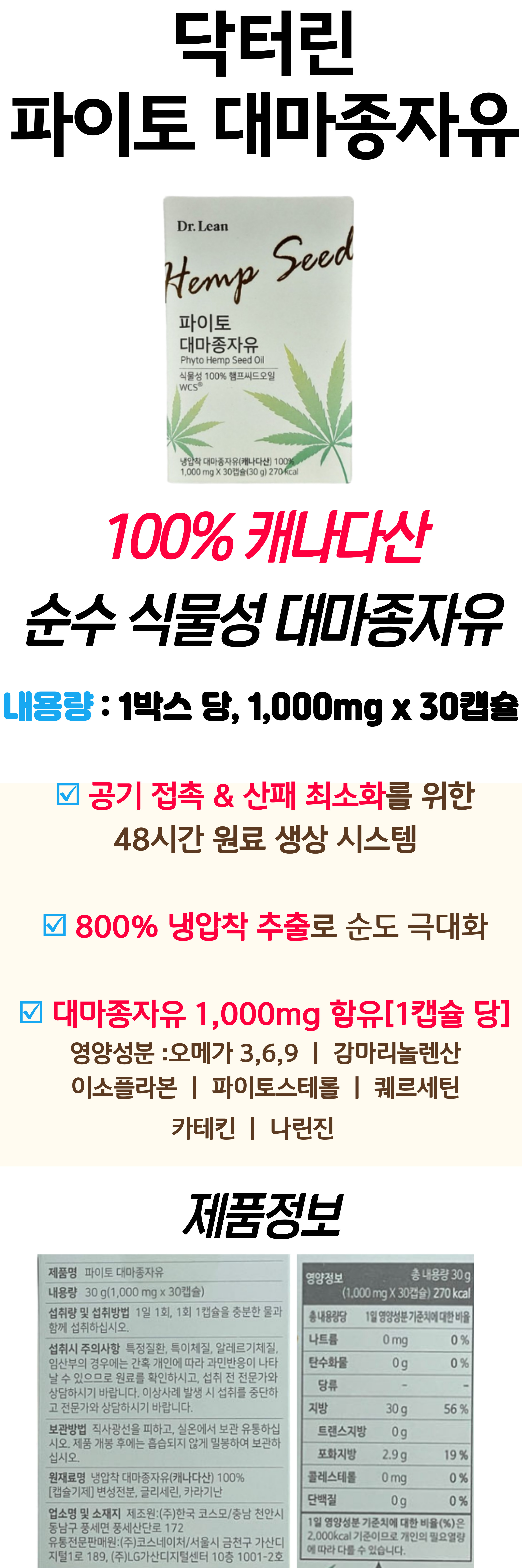 필수아미노산 오메가 케어 닥터린 대마 햄프 시드 오일 파이토 종자유 헴프 씨드 감마리놀렌산 홈쇼핑 식물