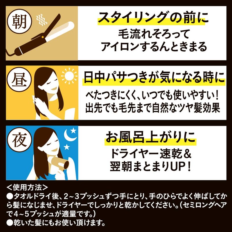 • Non-sticky oil type that can be used in the morning or day