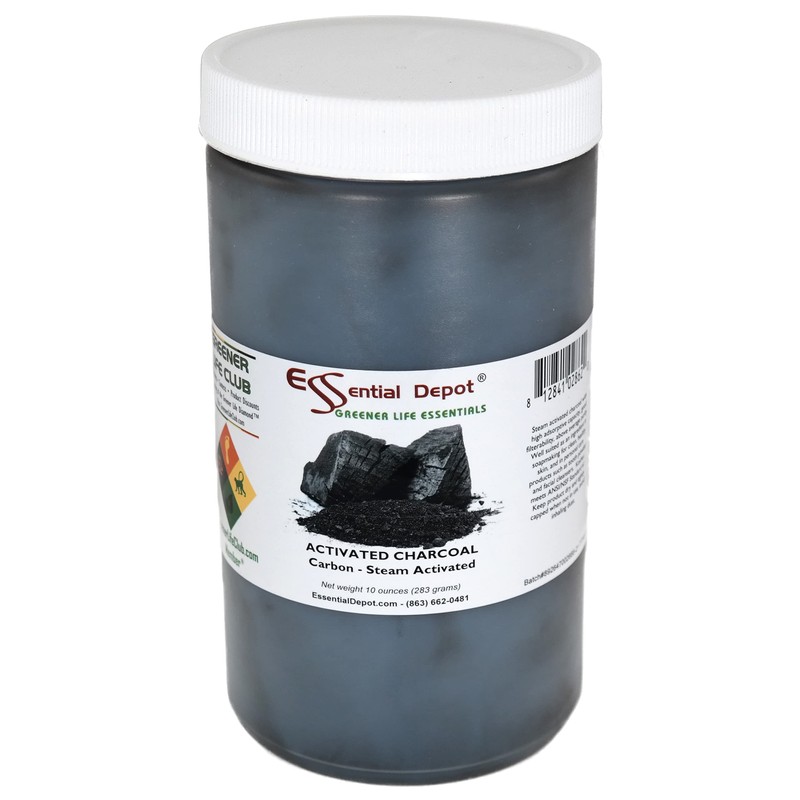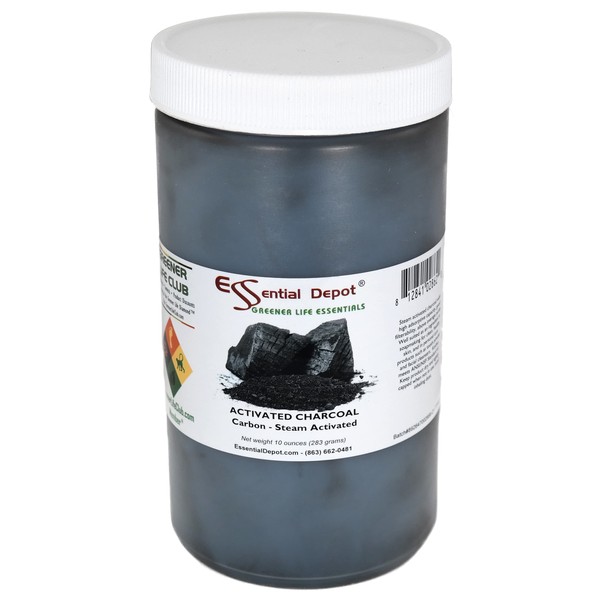 Essential Depot Activated Charcoal Powder - 10 oz - Safety Sealed HDPE Container with Resealable Cap