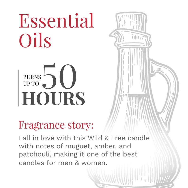 - SINGLE WICK CANDLE – This Wild & Free candle has a single wooden wick and burns up to 50 hours. Its colored natural soy wax blend candle wax not only accents your home décor but releases a calming scent while maintaining a consistent burn.
