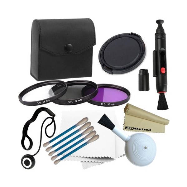 Essential Lens Accessory Kit for Sony Alpha A33 A35 A55 A57 A65 A99 (with 18-55mm and 55-200mm Lenses) -- Includes: 55mm Multicoated Filter Kit UV CPL FLD + Lens Cap Cover + Cap Keeper + Lens Cleaning Pen + Deluxe Cleaning Kit Blower Brush + 5 Cotton Swa