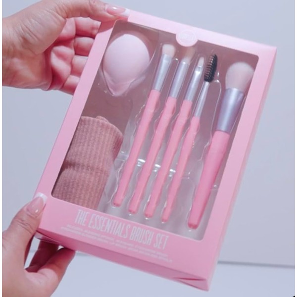 Essential Makeup Brush Set, 5 Pink Brushes with Applicator Sponges and Headband, Beauty Tools Kit