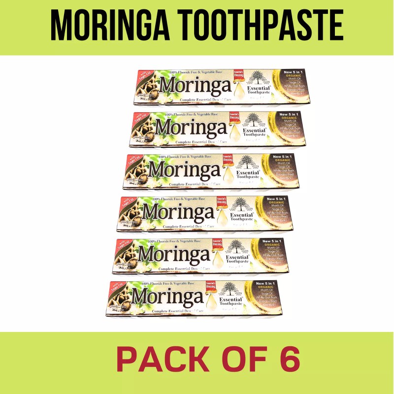 Essential Palace 6 PACK- MORINGA Toothpaste, Natural & Organic, Fluoride Free & Vegetable Base