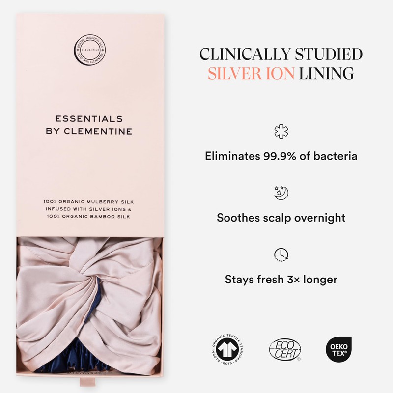 Essentials by Clementine Organic Hair Bonnet in Ballet Pink | Silver Ion Silk Lined Bamboo Sleep Cap for Frizz-Free, Curly Hair, and Scalp Health