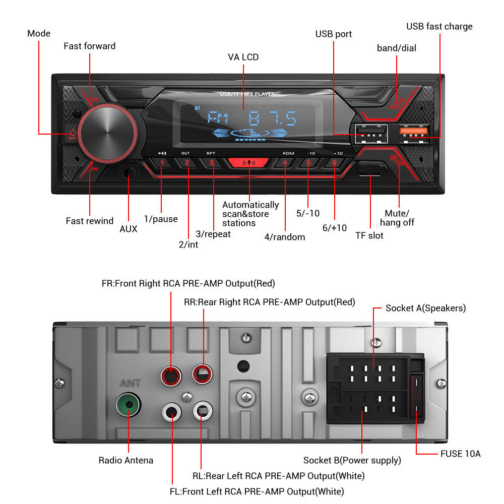 Hands-free system for your mobile phone: So that you can always drive safely and flexibly, this car radio offers you the function of making wireless calls using the microphone on the radio and the speakers in the car. All you have to do is connect your Bluetooth mobile phone to the radio via Bluetooth!