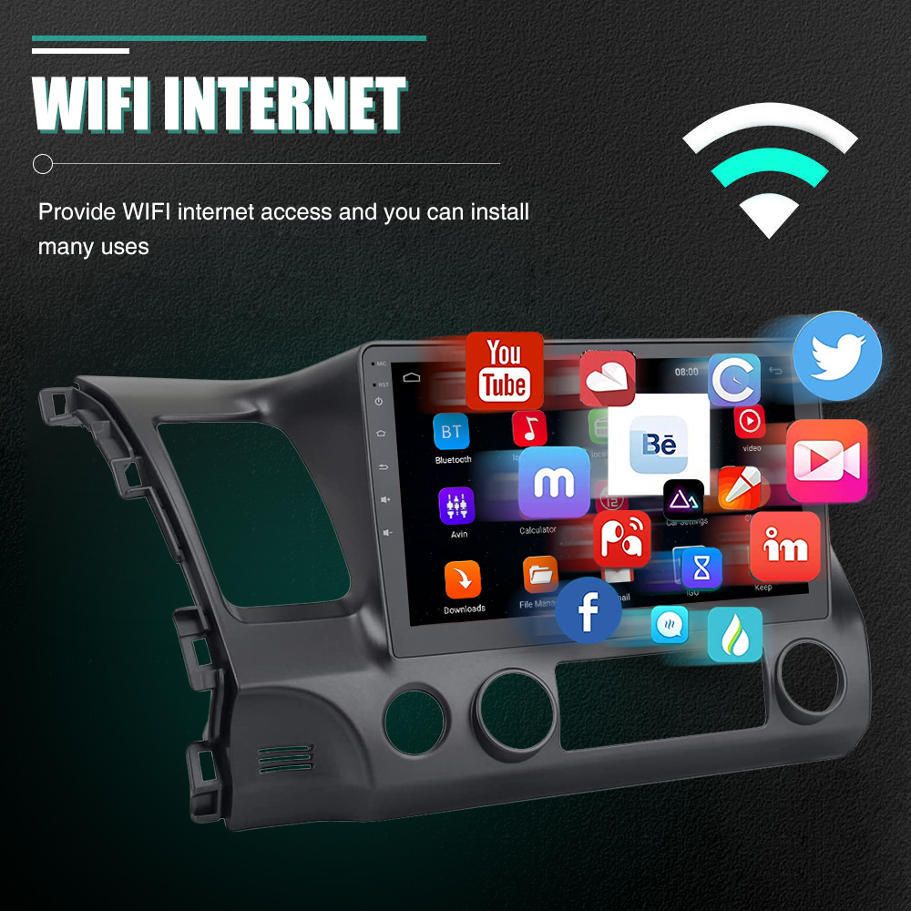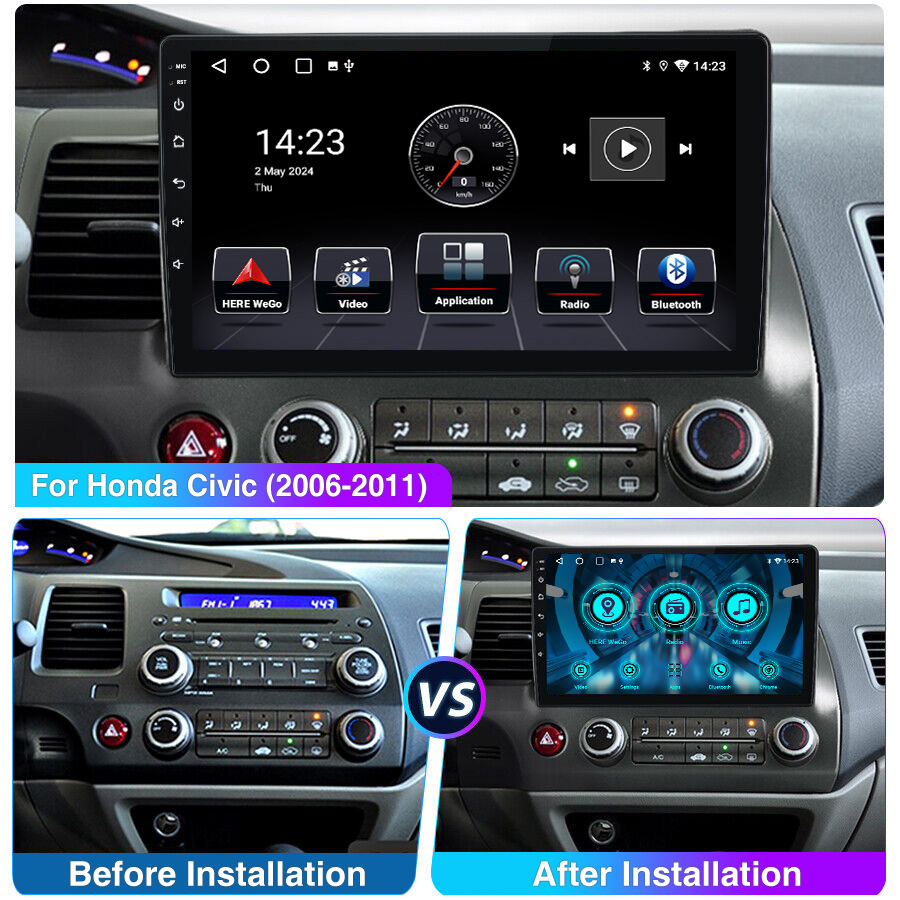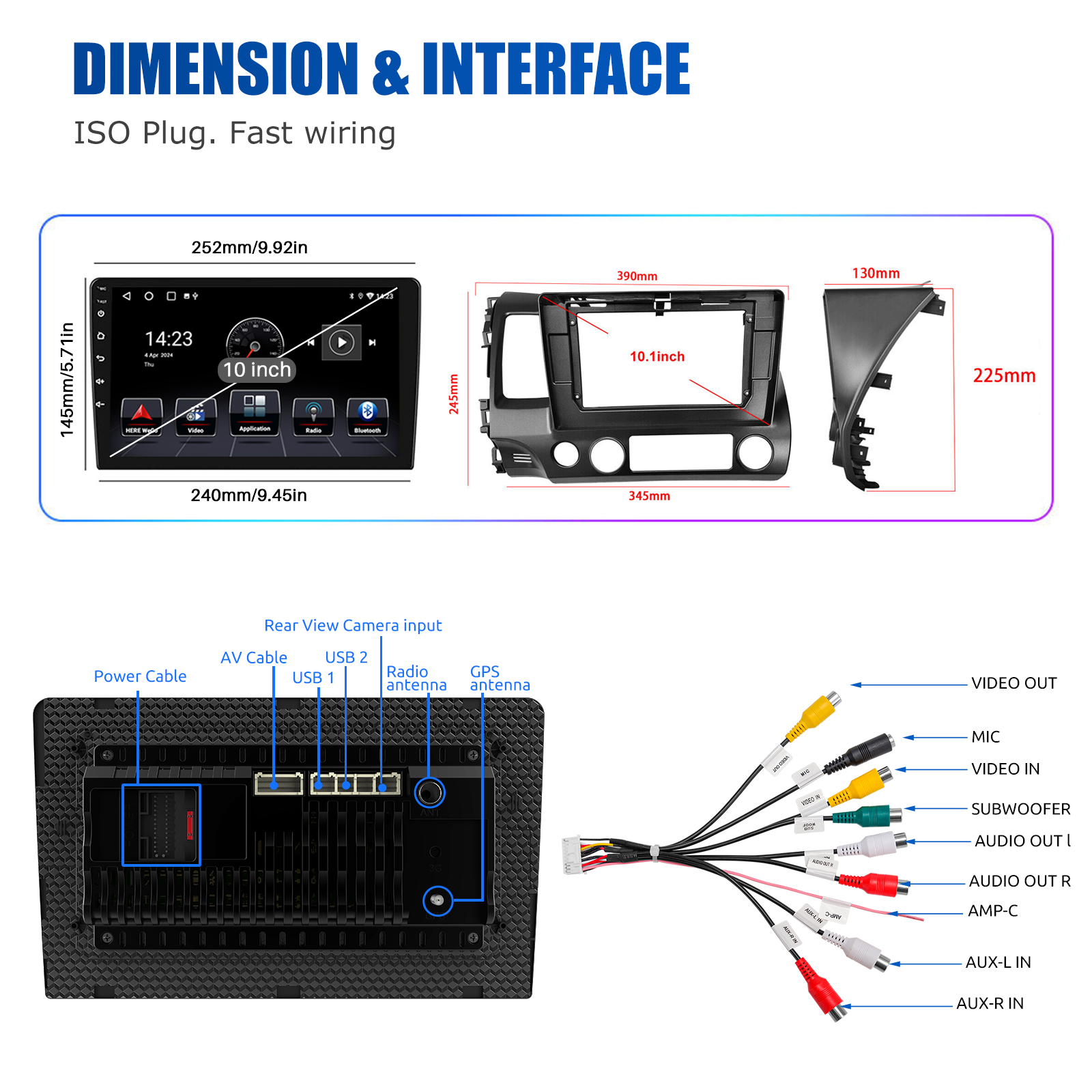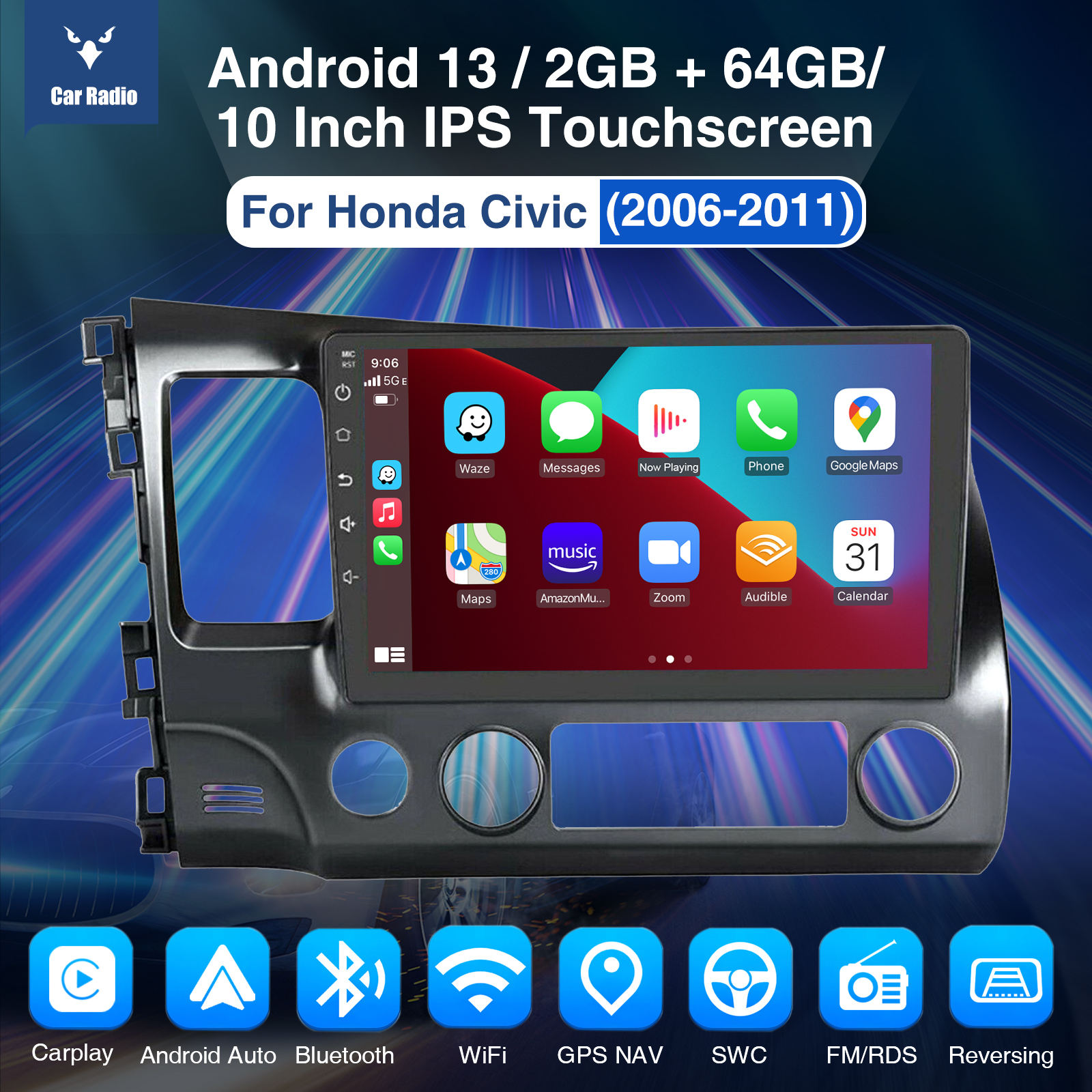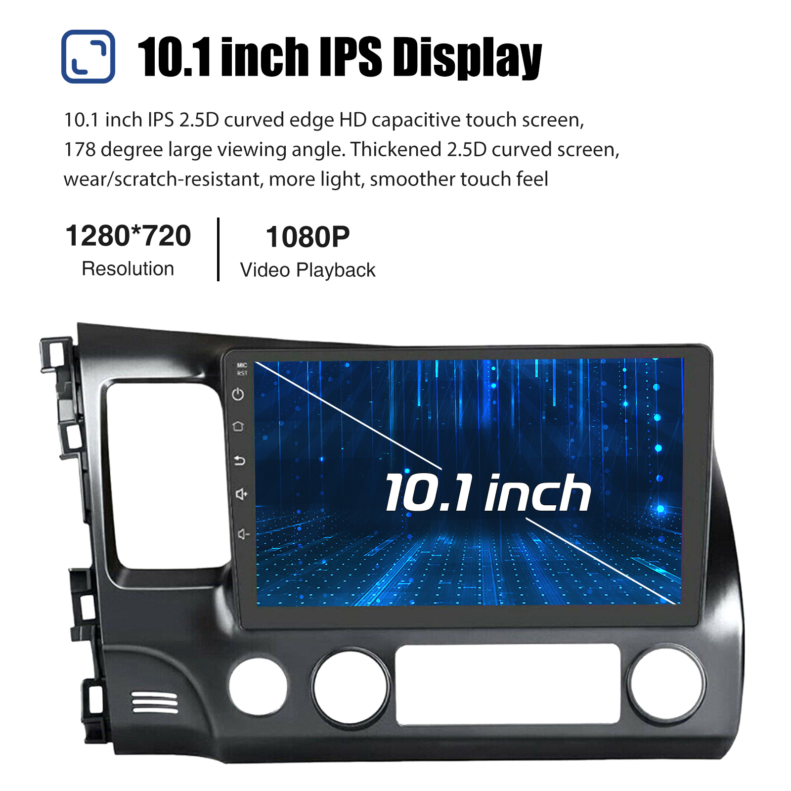 10.1 Inch Android 13 Car Radio For Honda Civic 8 VIII 2006-2011: The Android car radio with 10.1" 1280* 720 HD IPS capacitive touchscreen, 2GB RAM and 64GB ROM allows you to download your favorite apps and videos, so driving is no longer boring. No extra frame, no cable change, plug and play.