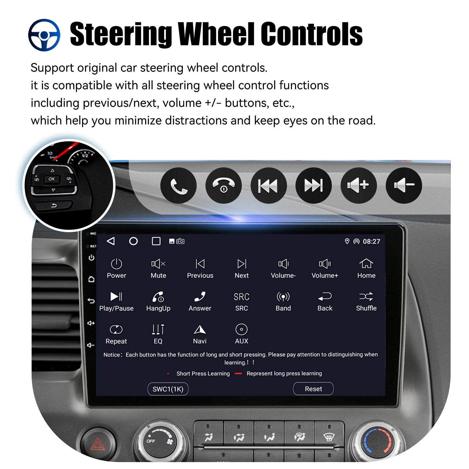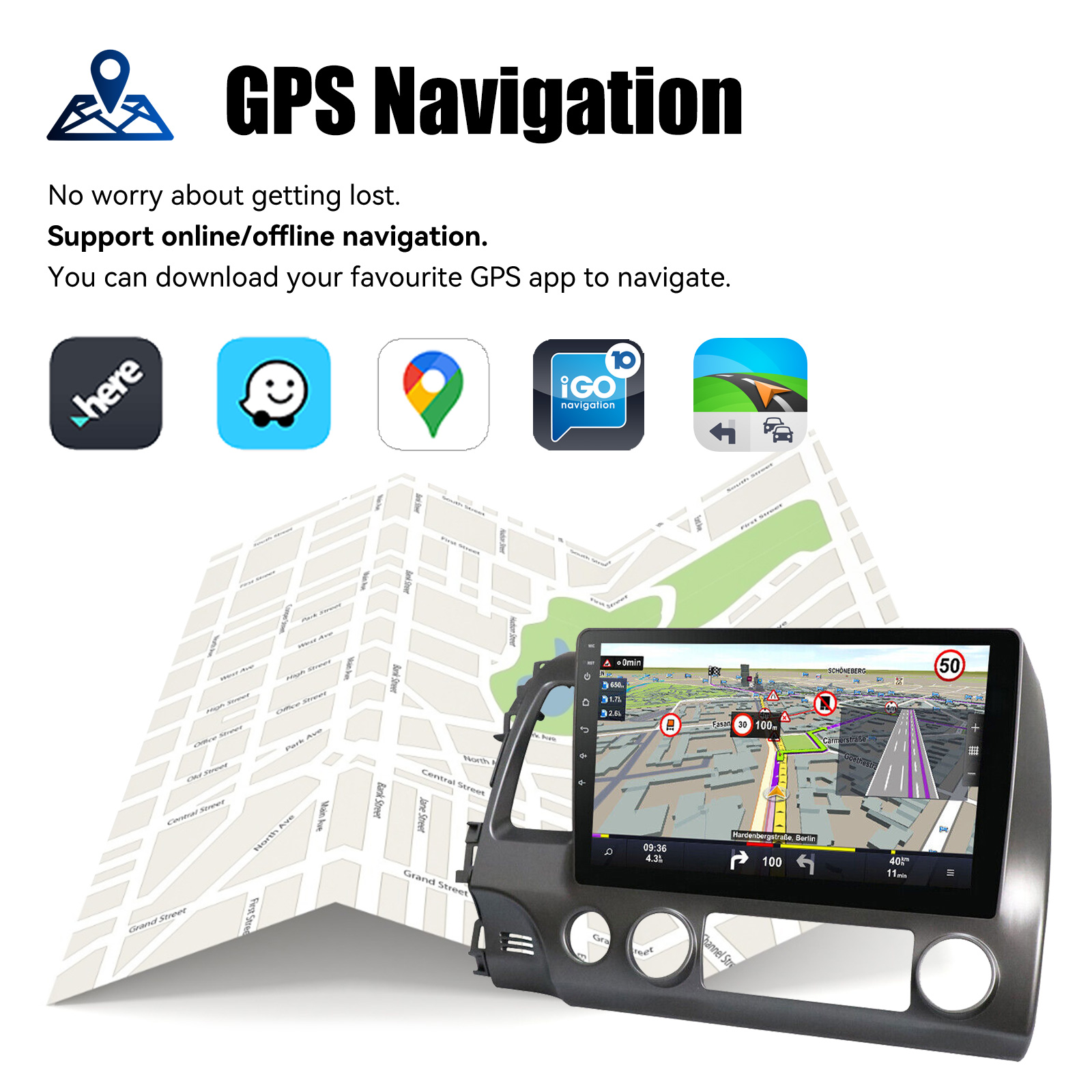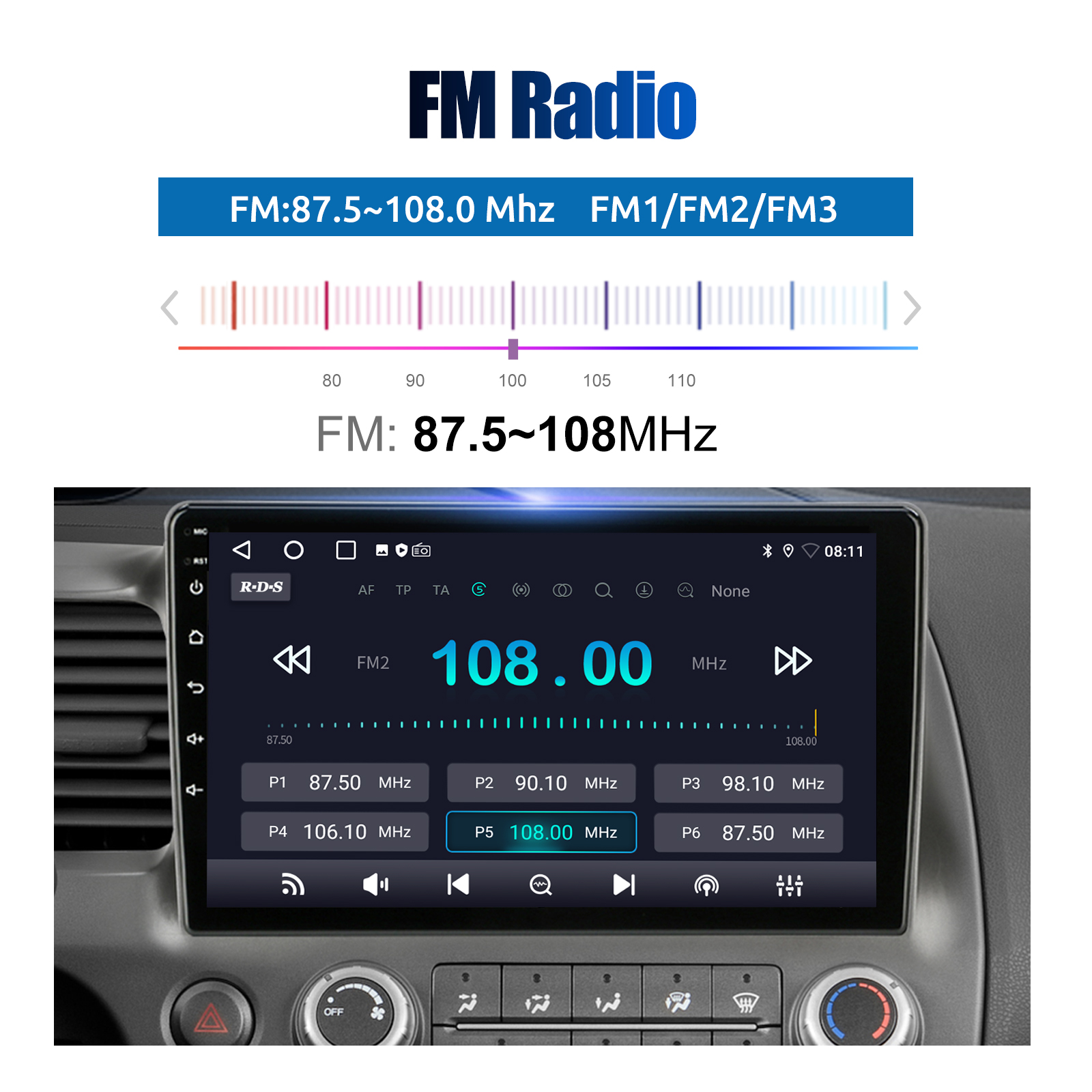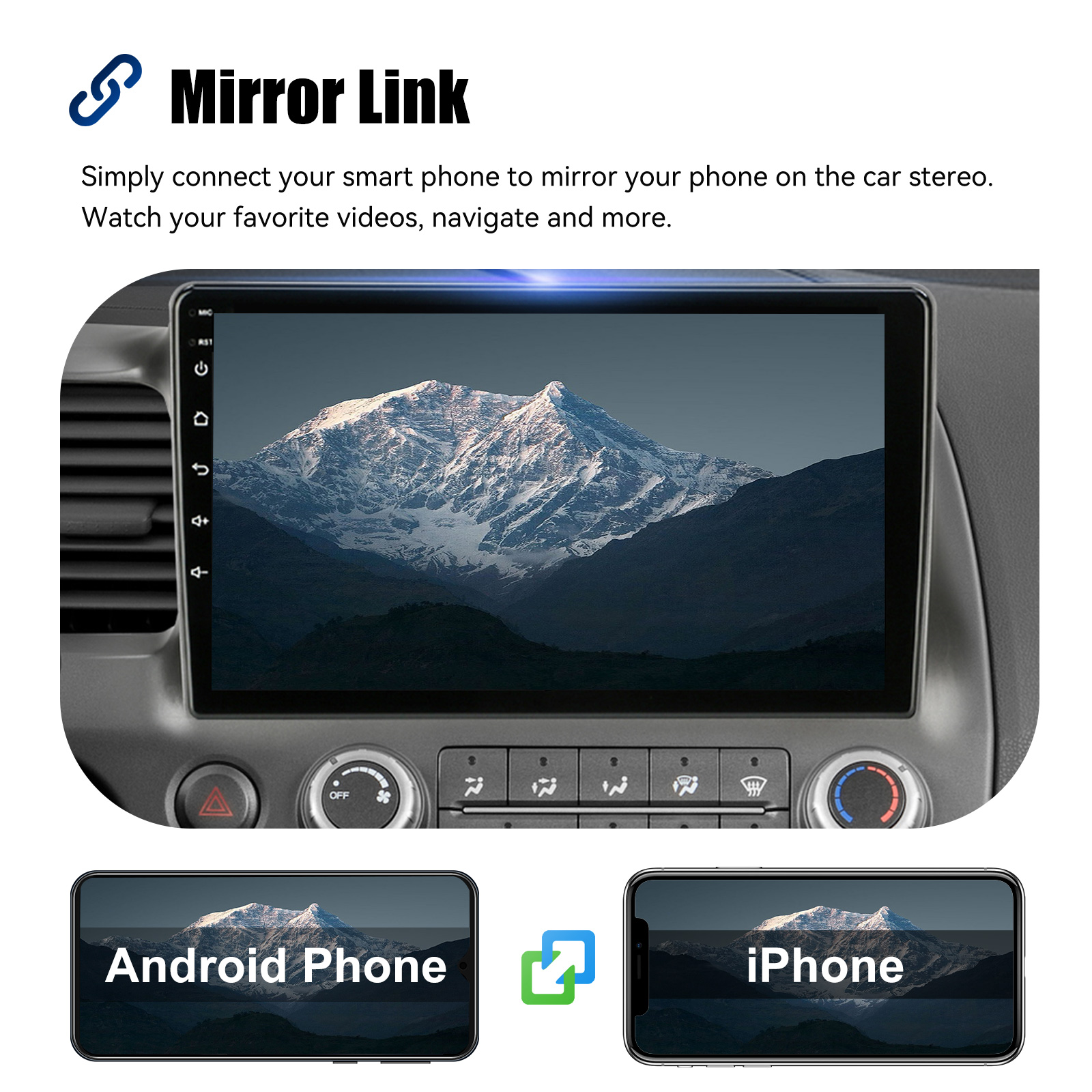 10.1 Inch Android 13 Car Radio For Honda Civic 8 VIII 2006-2011: The Android car radio with 10.1" 1280* 720 HD IPS capacitive touchscreen, 2GB RAM and 64GB ROM allows you to download your favorite apps and videos, so driving is no longer boring. No extra frame, no cable change, plug and play.