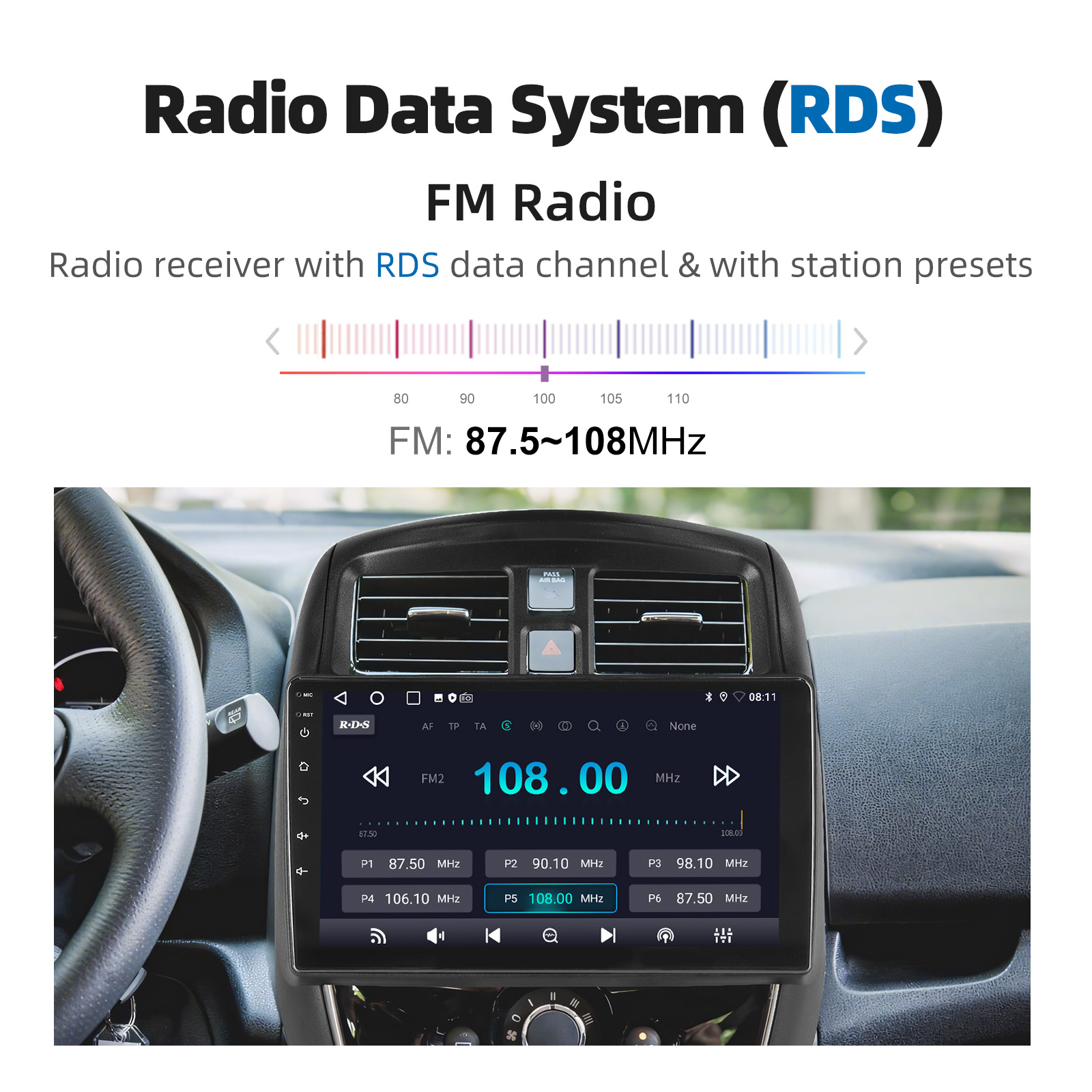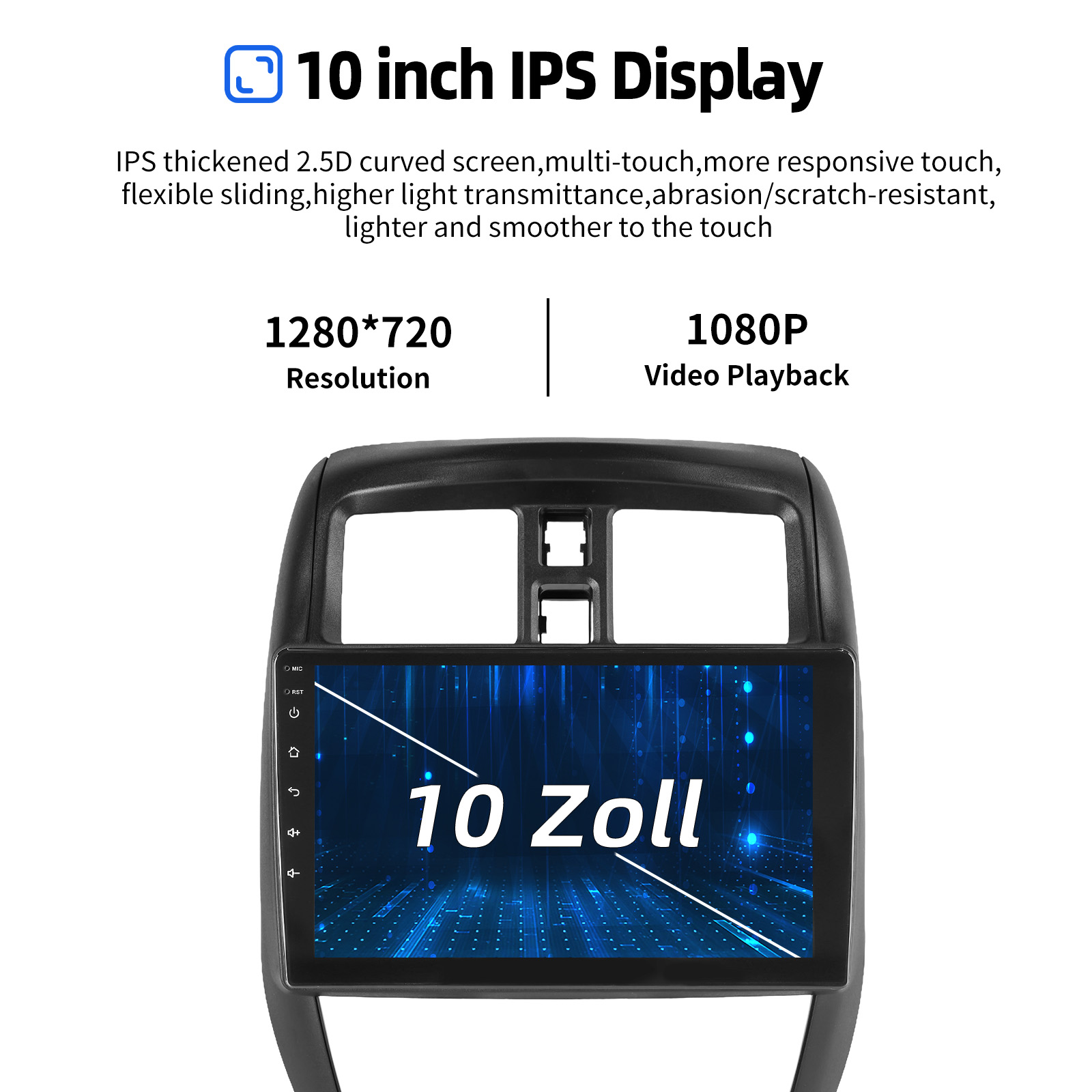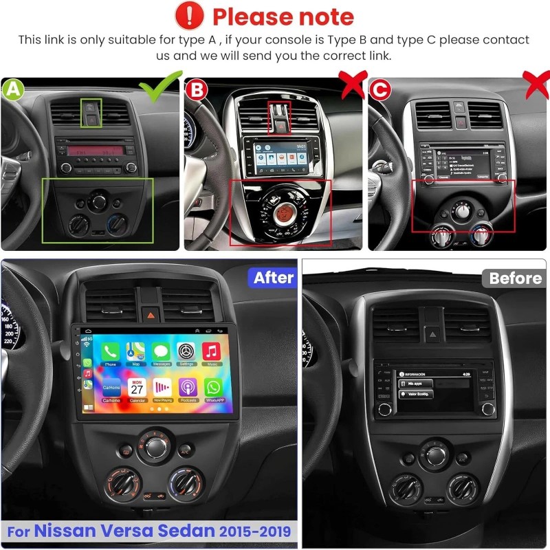 10.1 Inch Android 14 Car Radio For For Nissan Versa Sedan 2015-2019 : The Android car radio with 10.1" 1280* 720 IPS capacitive touchscreen, 2GB RAM and 32GB ROM allows you to download your favorite apps and videos, so driving is no longer boring. No extra frame, no cable change, plug and play.