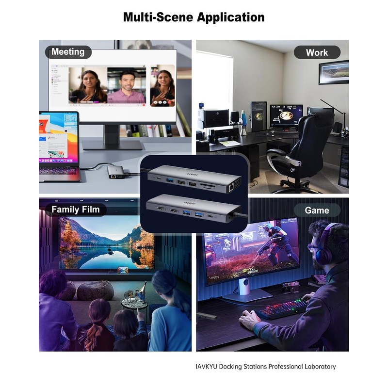 • Ethernet estable de 1000 Mbps: la estación de acoplamiento de doble monitor, también funciona como una estación de acoplamiento universal, incorpora un robusto adaptador USB. Está equipado con un puerto RJ45 integrado en la interfaz Ethernet del concentrador USBC, capaz de soportar velocidades de red de hasta 1000Mbps. Esta opción de conectividad suele ser más fiable y rápida que Wi-Fi, lo que puede mejorar significativamente la productividad y garantizar una conectividad sin problemas.