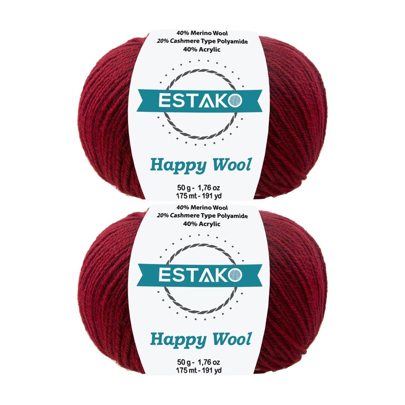 Estako Happy Wool (2 Skeins Pack) 40% Merino Wool 20% Cashmere Type Polyamide 40% Acyrlic Fingering Weight Soft Knitting and Crochet Yarn (2 x 1.76 oz) (2 x 191 yds) (8016 - Claret)