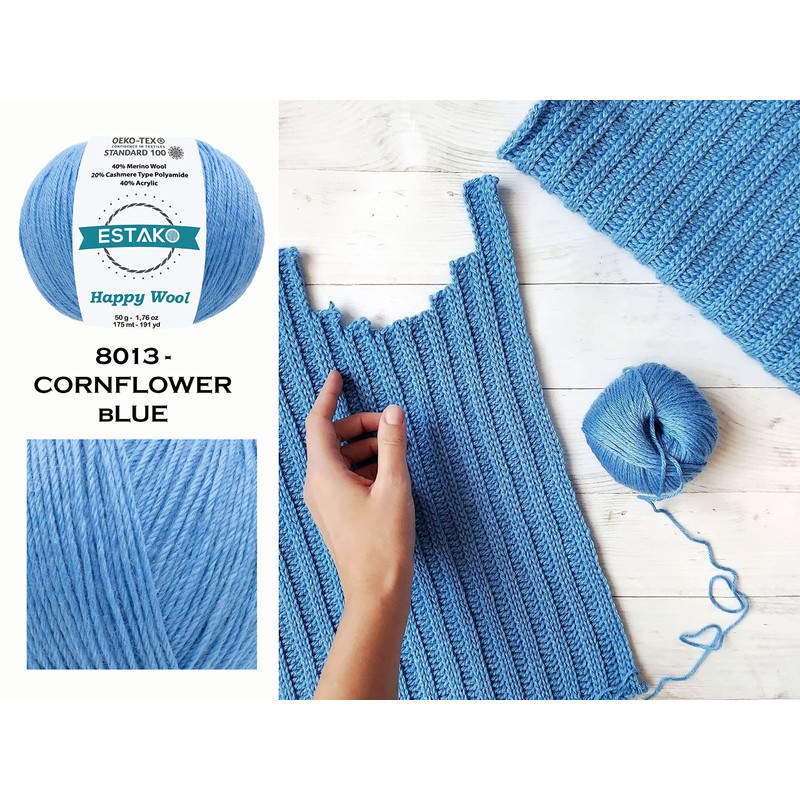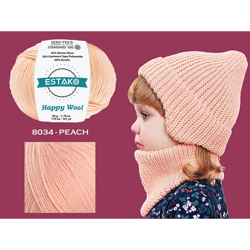 - Estako Happy Wool 40% Merino Wool 20% Cashmere Type Polyamide 40% Acyrlic Fingering weight soft Knitting and Crochet Yarn . Each ball 1.76 oz (50gr) 191 yds (175 m)